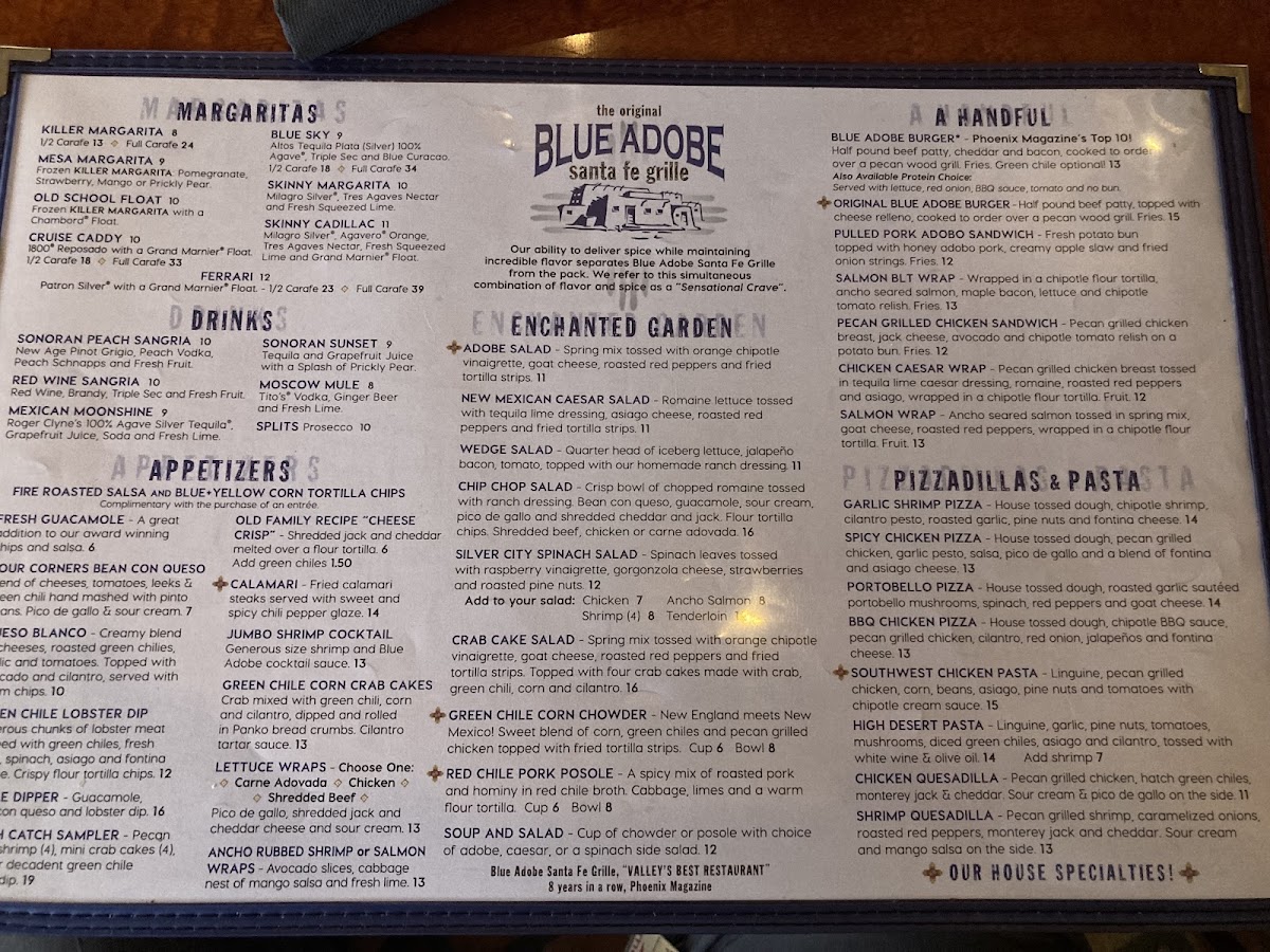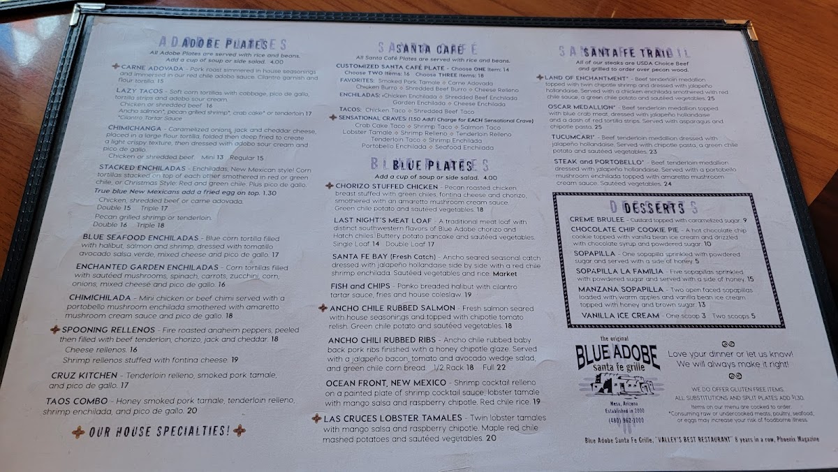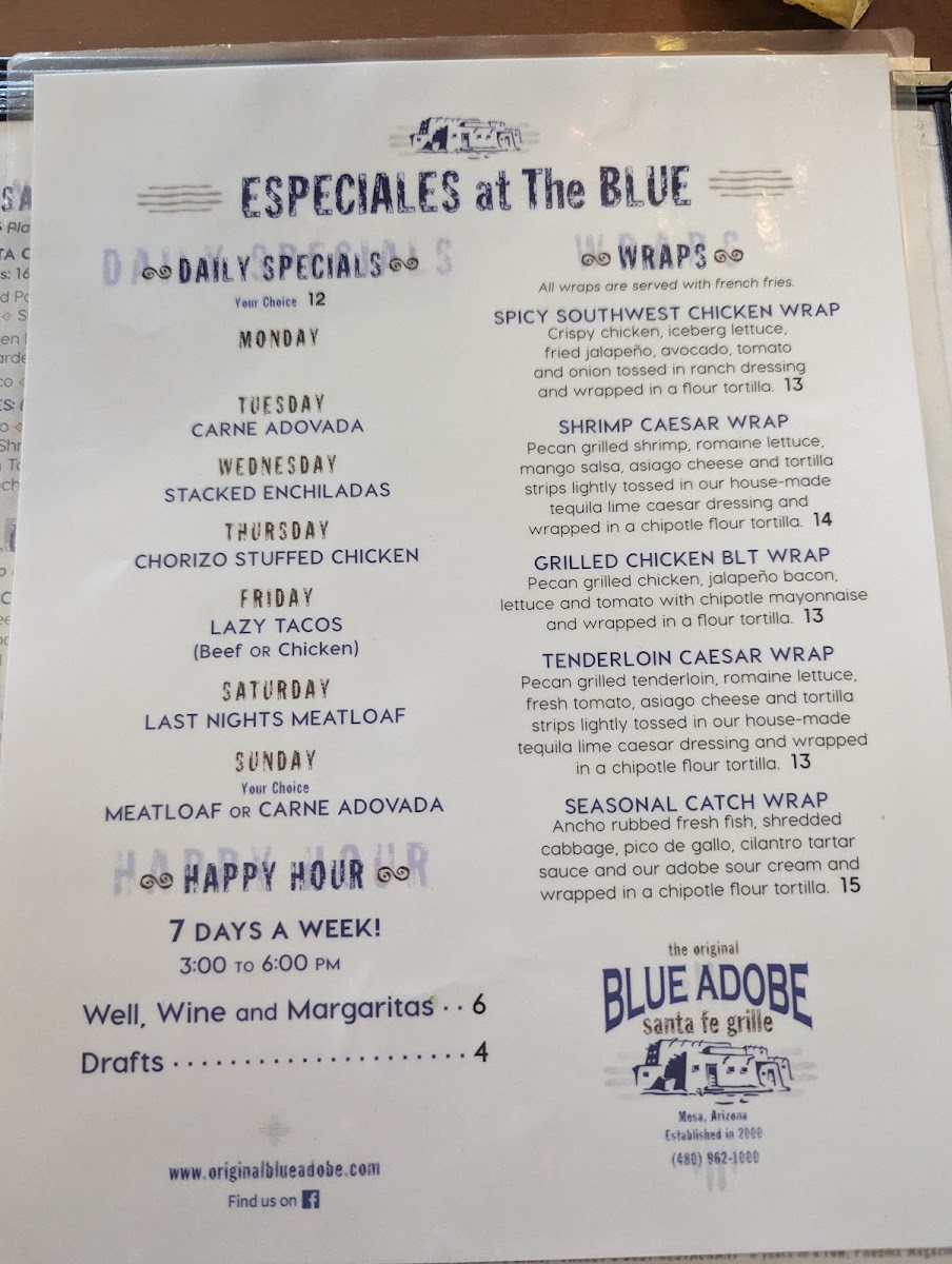 The Original Blue Adobe Grille Menu