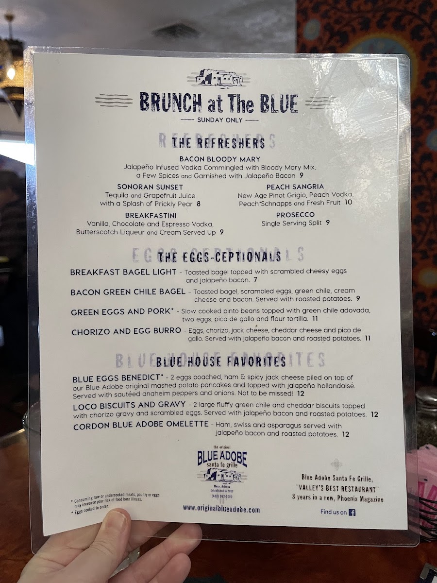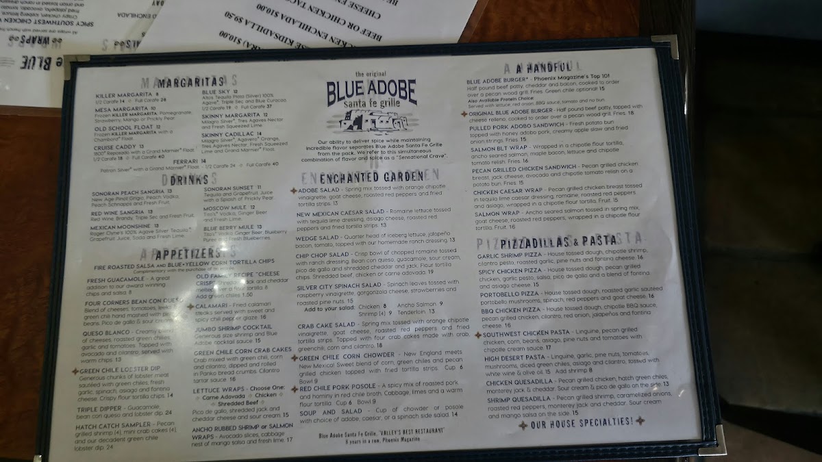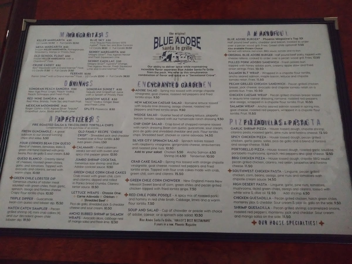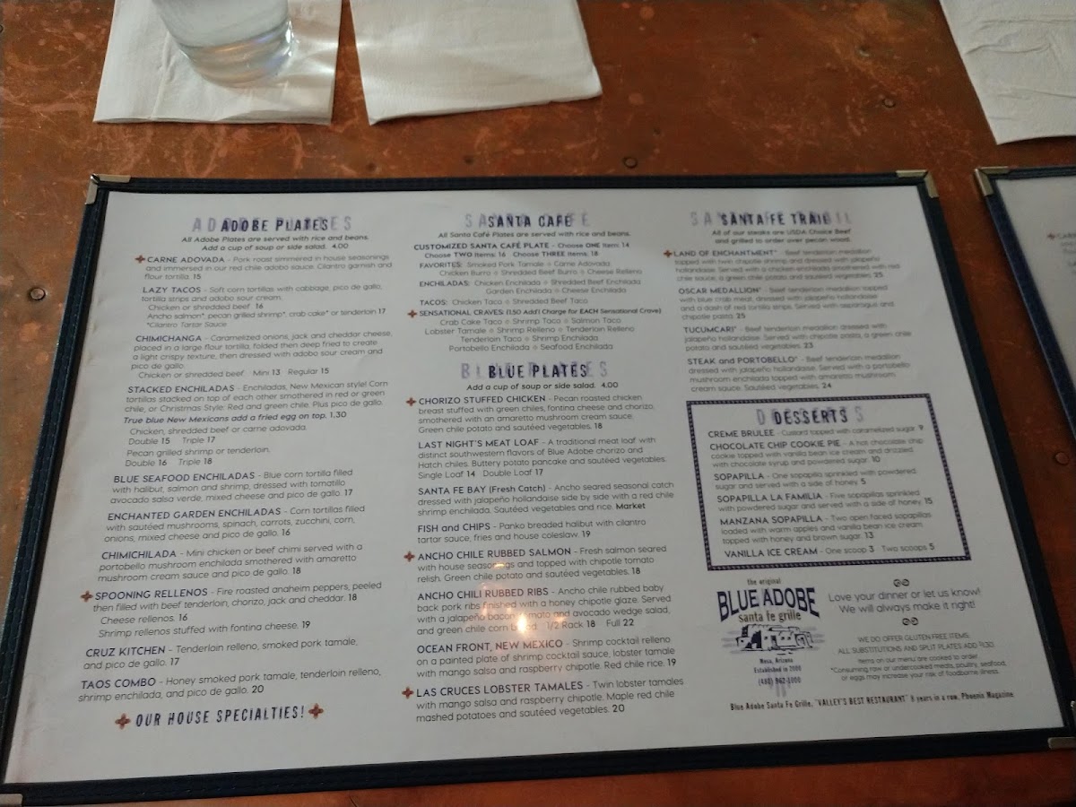 The Original Blue Adobe Grille Menu